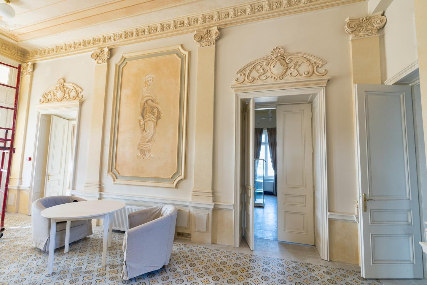 Continua lucrarile de picturi murale interioare ale conacului , urmand a incepe plantarea materialului vegetal in parcul acestui obiectiv !